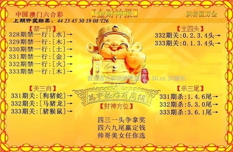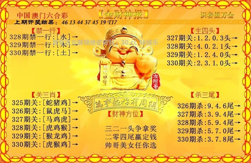 334期:发财五尾【2.3.4.7.9】开:猴46
